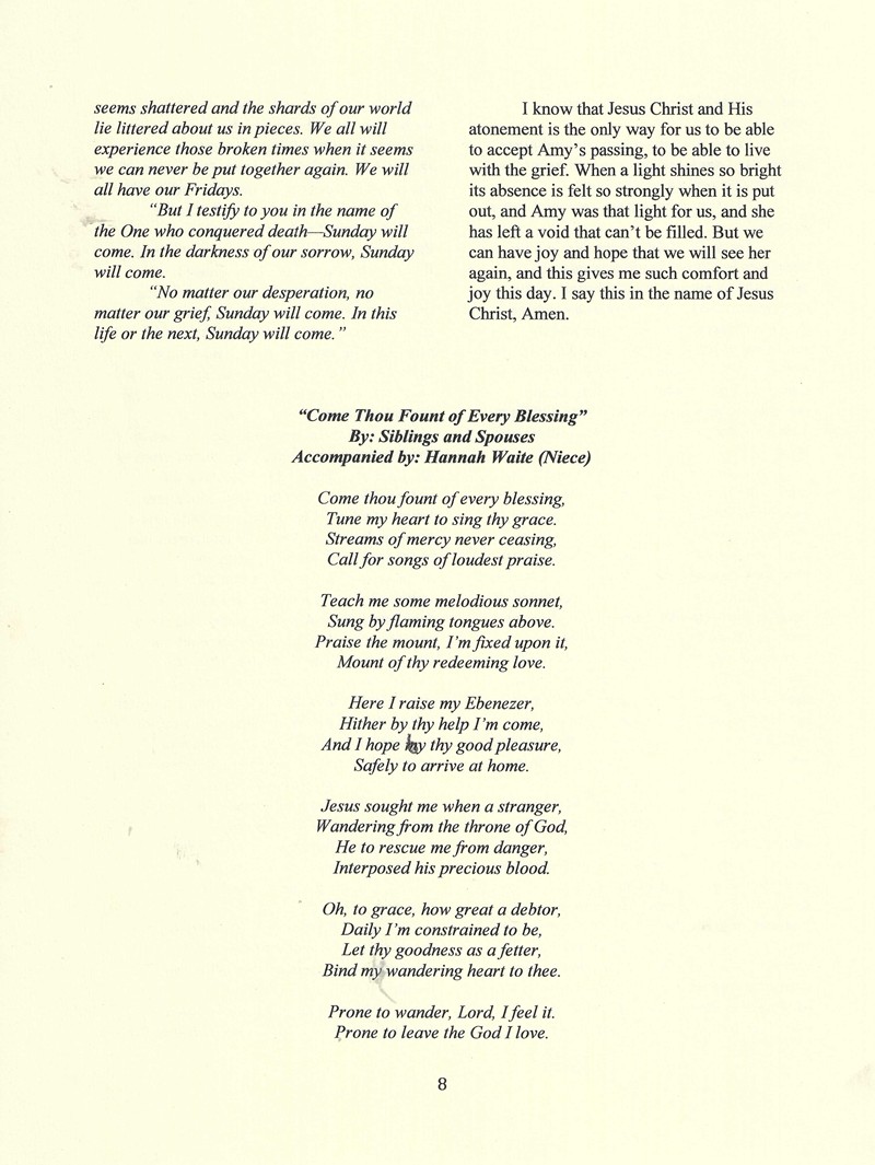 Funeral Services for Amy