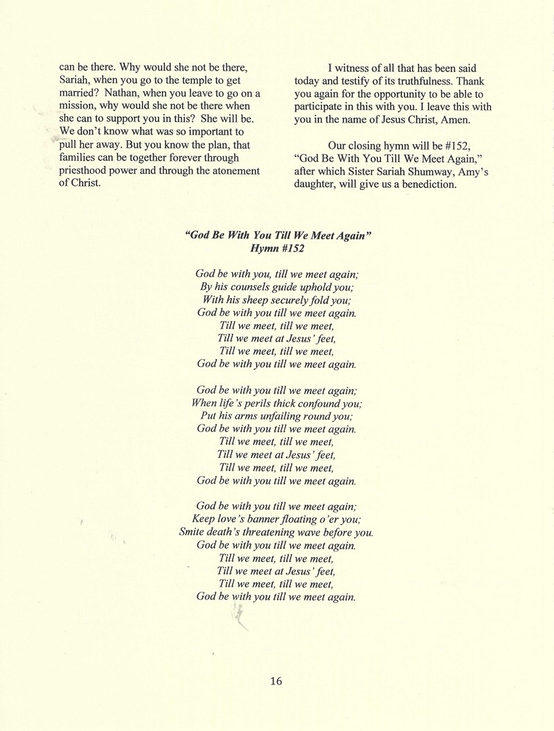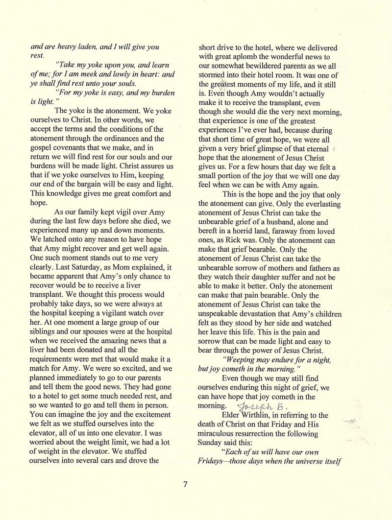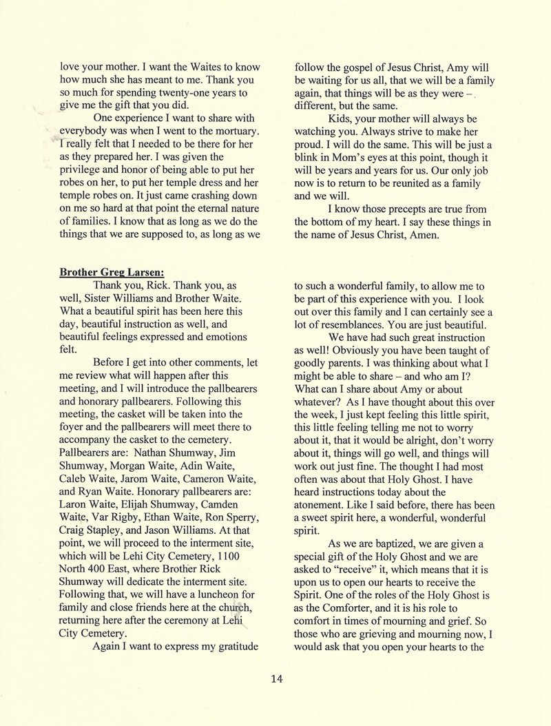 Funeral Services for Amy