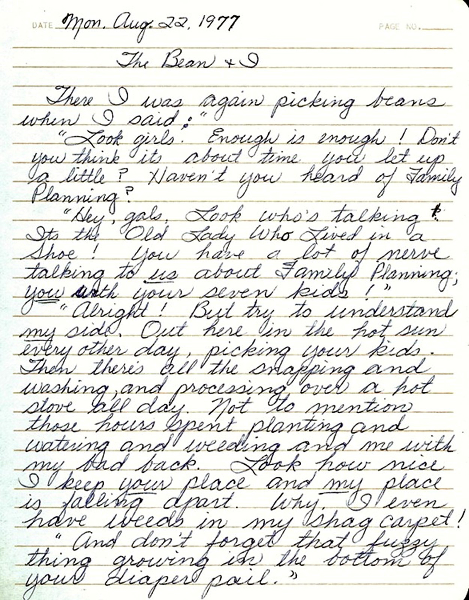 Back on September 10, 1979 after school and chores we loaded the kids into our GMC Suburban for a picnic in the hills about half an hour's drive from home. The birch bark-looking canoe was tied on top, and we had a very nice time at Lake Cleveland. The next day as the scholars were getting ready to catch the bus, Ethan nearly missed it while trying to find his language book, and had to leave all upset because he couldn't. I start canning peaches, tomatoes and cucumbers that were dead ripe. Amidst the mess and clutter, Ethan called from the school, still upset, asking if I could please find his book and take it to the school? I hated to leave the canning mess, but after looking and looking, the book was found, and upon loading little ones, we started off with the canoe still strapped to the top of the Suburban. We had only gone a short distance when it started to slip to one side, requiring a stop by the side of the road to slide it back on along with a feeble attempt to tighten the ropes. Not long after, at the stop sign, it again slid almost off, and even once again at the railroad tracks. At the school, I left Ethan's book with Mr. Miller, as well as leaving a notebook of Amy's I thought she might need, and repeated the nerve-wracking adventure of the slipping canoe all the way back home. This evening, after canning twenty-six quarts of peaches, twenty-one of tomatoes, and twenty-one quarts of dill pickles, I asked Ethan......"Aren't I a wonderful mother to go to all that trouble to take your language book to school?" He answered, "Huh? We didn't even HAVE language today!"