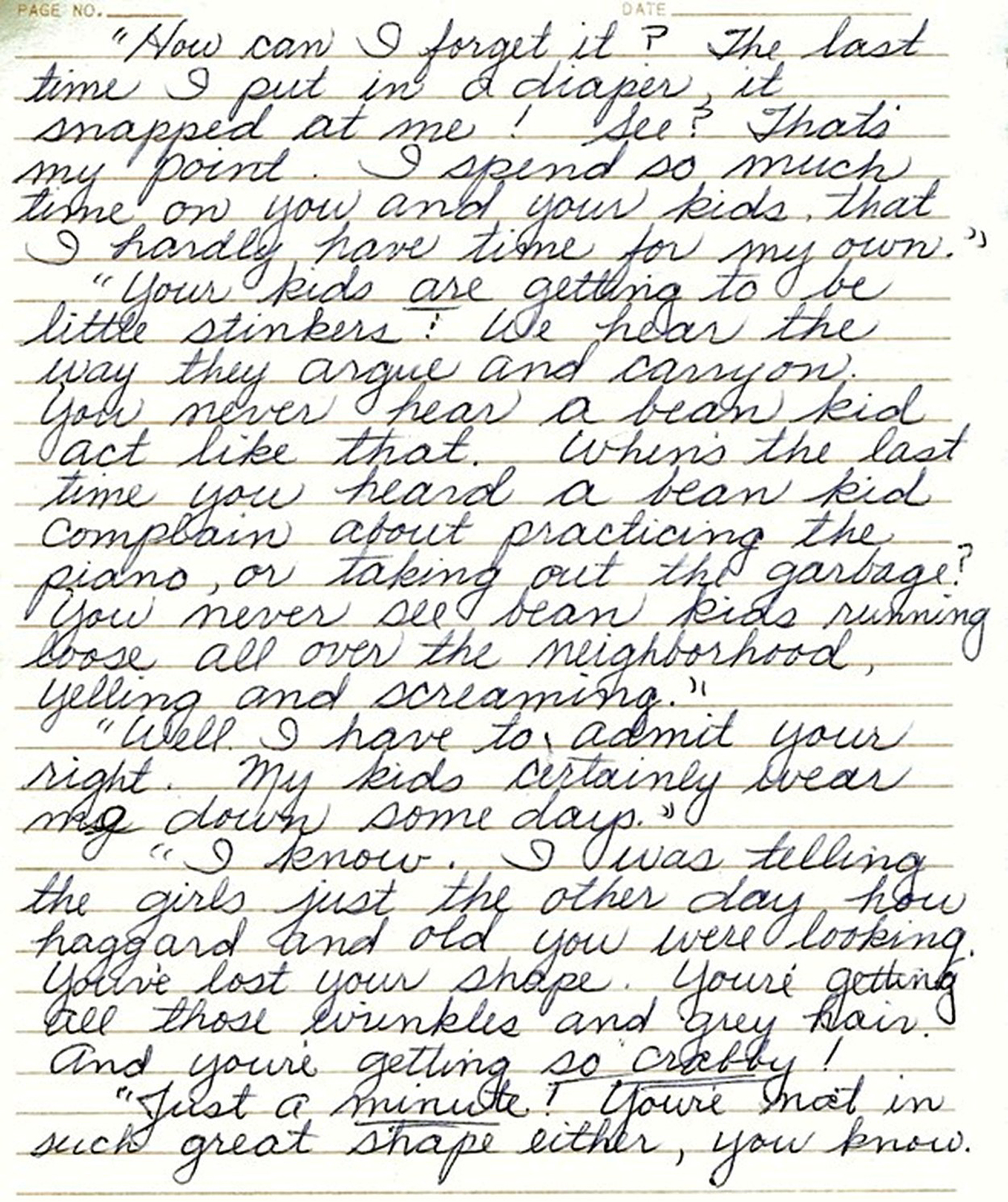 Speaking of February being a month for mumps... I had them a few years ago, along with three or four children. Me, a grown woman, with a childhood disease, proving that I wasn't as old as I looked! I lay miserably in bed one evening with my face all swollen up, listening to the rest of the family pitch in to fix a dinner of hot dogs and french fries, and I actually transcribed what I heard: