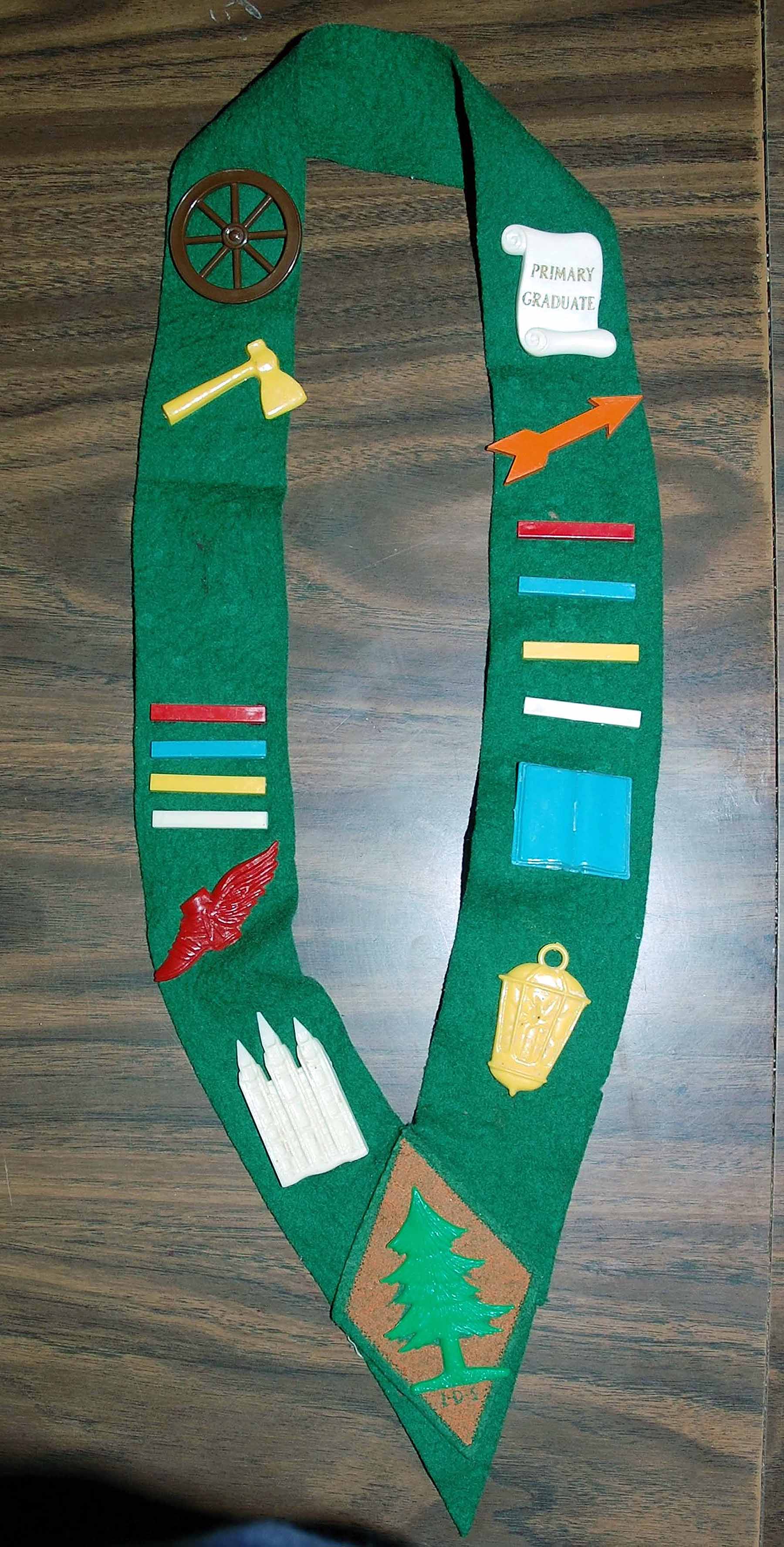 As we progressed through Primary we received emblems to show that we had accomplished certain tasks. The emblems were pinned to a bandelo that we wore to primary functions.