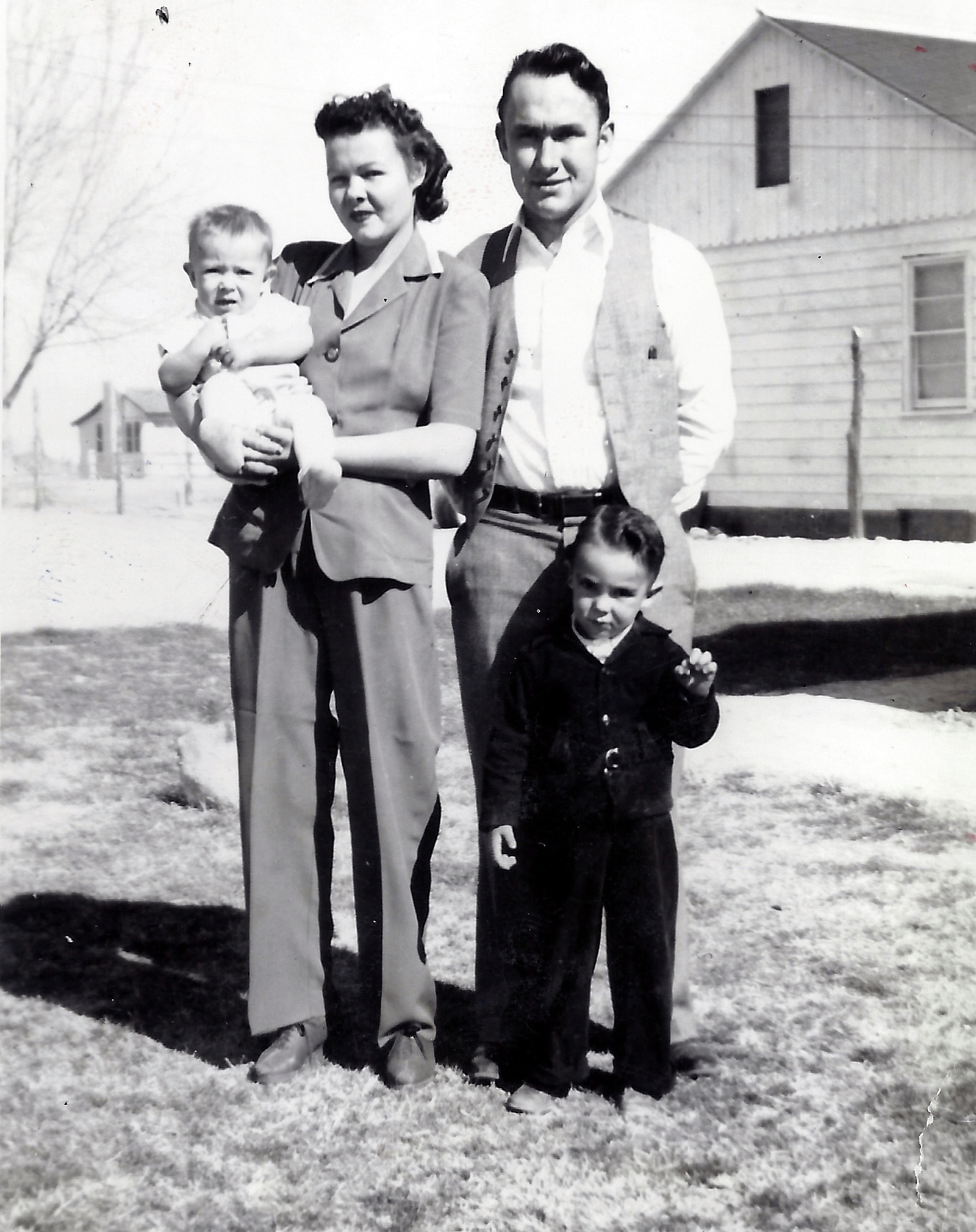 My parents, Uncle Moroni (Mac) Waite, and his wife June bought some land about two miles south of Homedale on Highway 95. They divided the land with my parents taking the largest piece. We built a basement house on our land and Uncle Mac and Aunt June built a small house on theirs. Each family also built a barn and corrals to keep cows in. We moved into the basement on November 7, 1946.