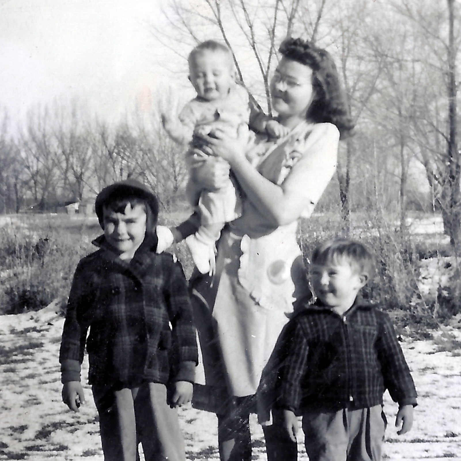 Me, Richard, Mom and Gary in front of the Taylor place.