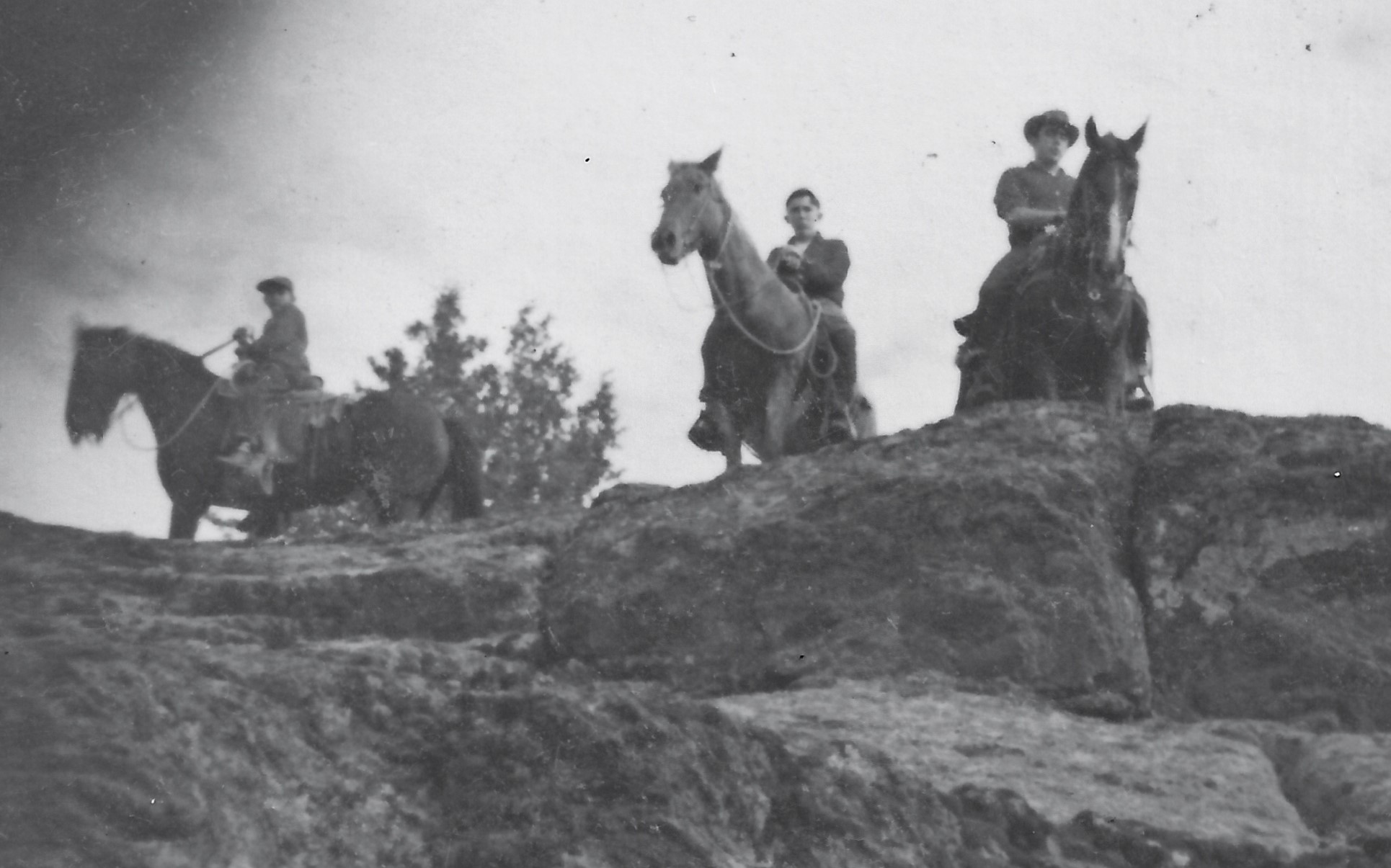 East of the highway was a sheep camp owned by Johnny Quintana. It consisted of large pens for the sheep, a ram-shackled cook house and a bunk house. I worked there a few times helping with the sheep. During the summer the camp was deserted because the sheep had been taken to the mountain pastures. Gary and I liked to ride our horses through the camp, chasing each other between the pens and the buildings. Once he ran into a wire that was stretched across a lane. It hit the top of his head and knocked him from his horse.