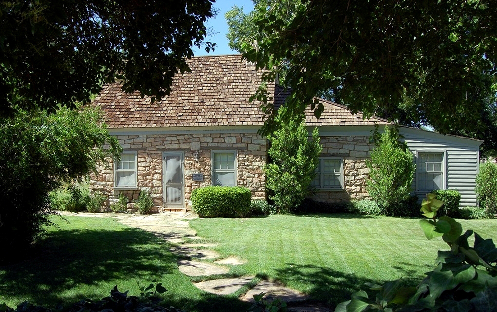 Up on the bench where children ran and played and nothing would grow for lack of water, a lush green golf course and country club now provide year-round entertainment. Just twenty feet from the old broom corn shop now stands a new fire and police station, Where the youth raced and rode wild burros, now elite riding stables and an arena provide their own form of entertainment: Albert's fields are covered with beautiful new homes and condominiums. Amid this oasis, still standing under the pink, cliffs, the old homestead is truly a landmark from another day.