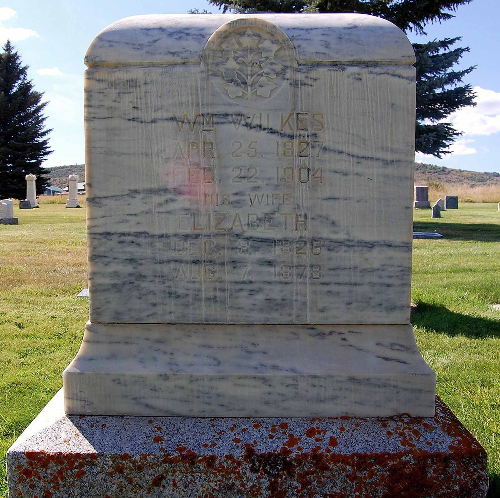 William Wilkes and Elizabeth Haines tombstone in St. Charles, Idaho