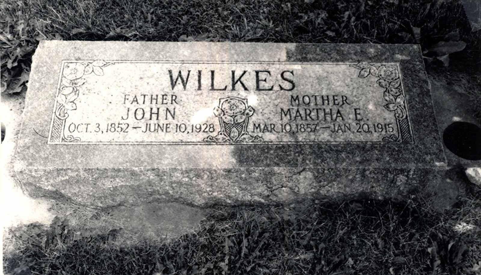 She was dearly loved by both her Wilkes and Blacker descendants. Her husband, John Wilkes lost his crippled left arm after his left hand was scratched as he was sifting through the ashes and debris when their old cabin on their homestead caught fire and burned down. This minor wound became infected and the infection spread to his arm, resulting in the need to have it amputated to save his life. He afterward wore his left sleeve pinned up. After the death of Martha, his wife, he overcame his difficulties with alcohol.