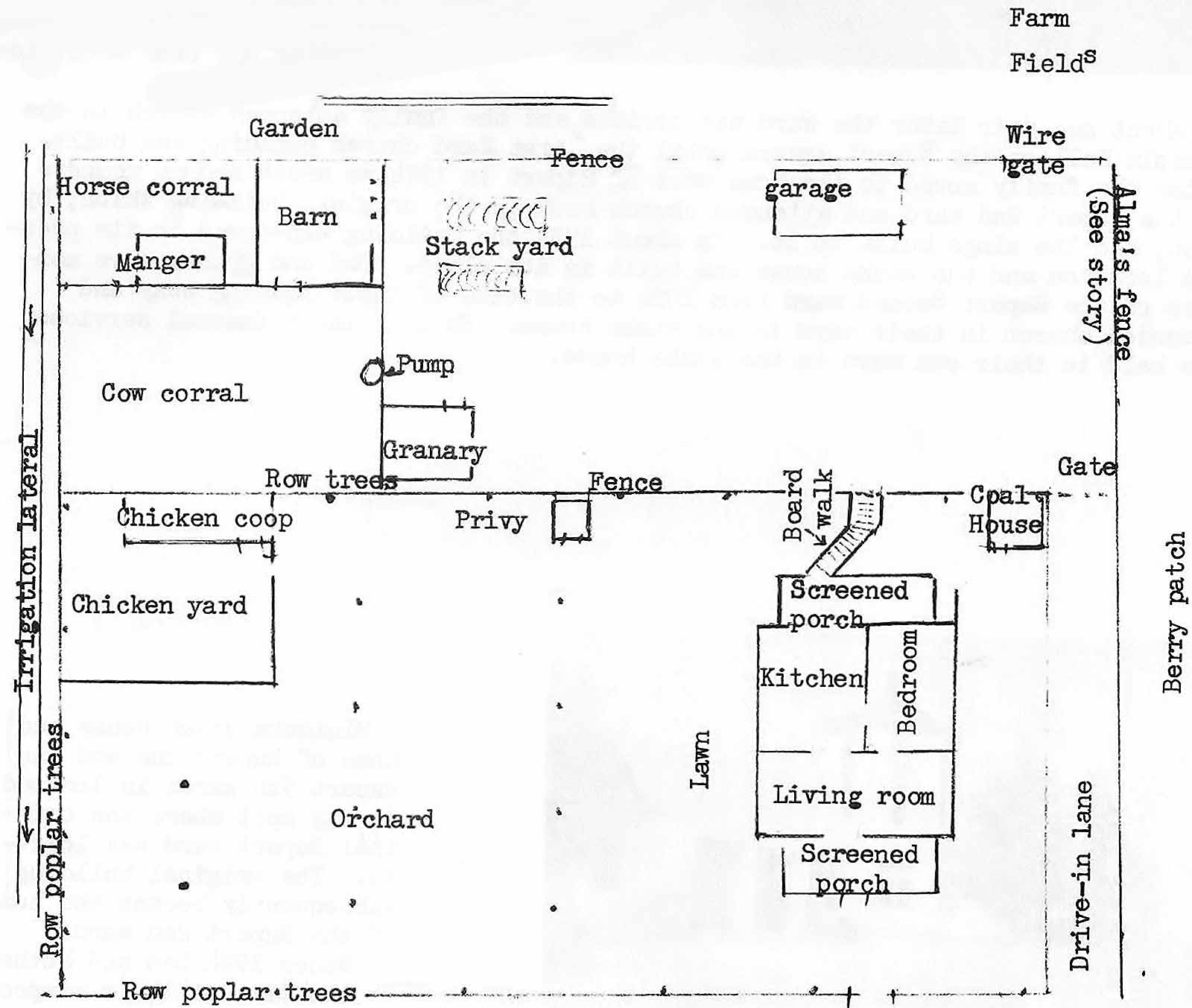 No housewife would find her lot easy who had to house her family of eight in a two room log house. The floors were of rough boards and these are not easy to keep clean under the best of conditions. There couldn't have been much floor space left to view with the furniture and eight pairs of shoes standing on it. Bed-down time was undoubtedly a challenge, for most of the children had to sleep on the floor. It so happened that the former owner had built a small shed, which technically was called a milk house, a short distance from the house to the north toward the corrals. This also had a dirt roof, but the roof was low and in envisioning how improvements could be made, the family decided that if that building could in some manner be attached to the house, it would make more room. Room was so badly needed, so planning and engineering were put to use and it was decided that if the roof of the milk house could be raised to the level of the roof of the house, and the several foot space between the two could be enclosed and roofed, the added section would supply at least a couple additional bedrooms. How soon this project was completed we have no way of knowing, however it is very possible it was not done for two or three years following their moving to the Valley.