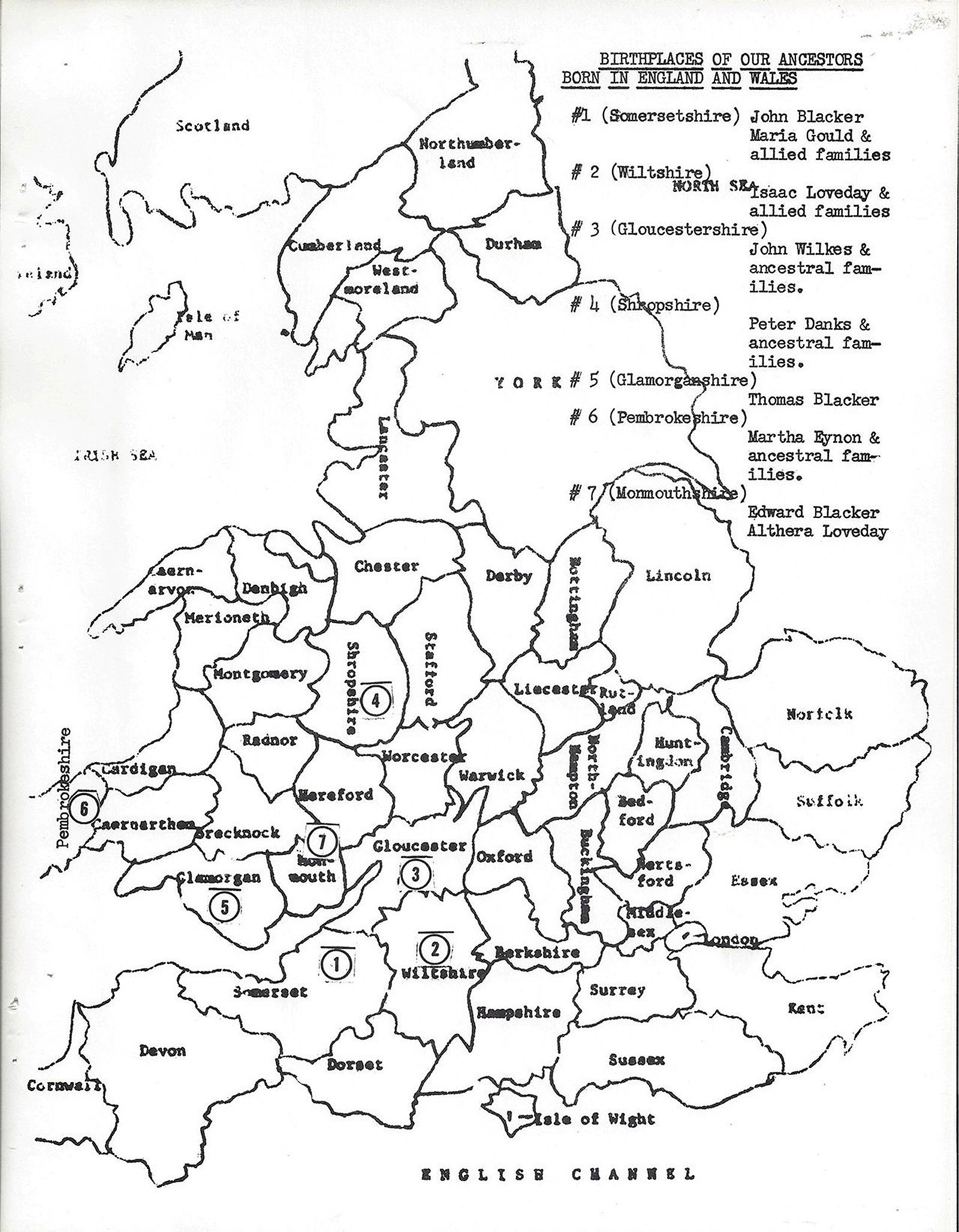 The Wilkes family, as indicated earlier, likewise has its roots in England. In fact, in nearby counties to the English and Welsh homes of the Blackers.