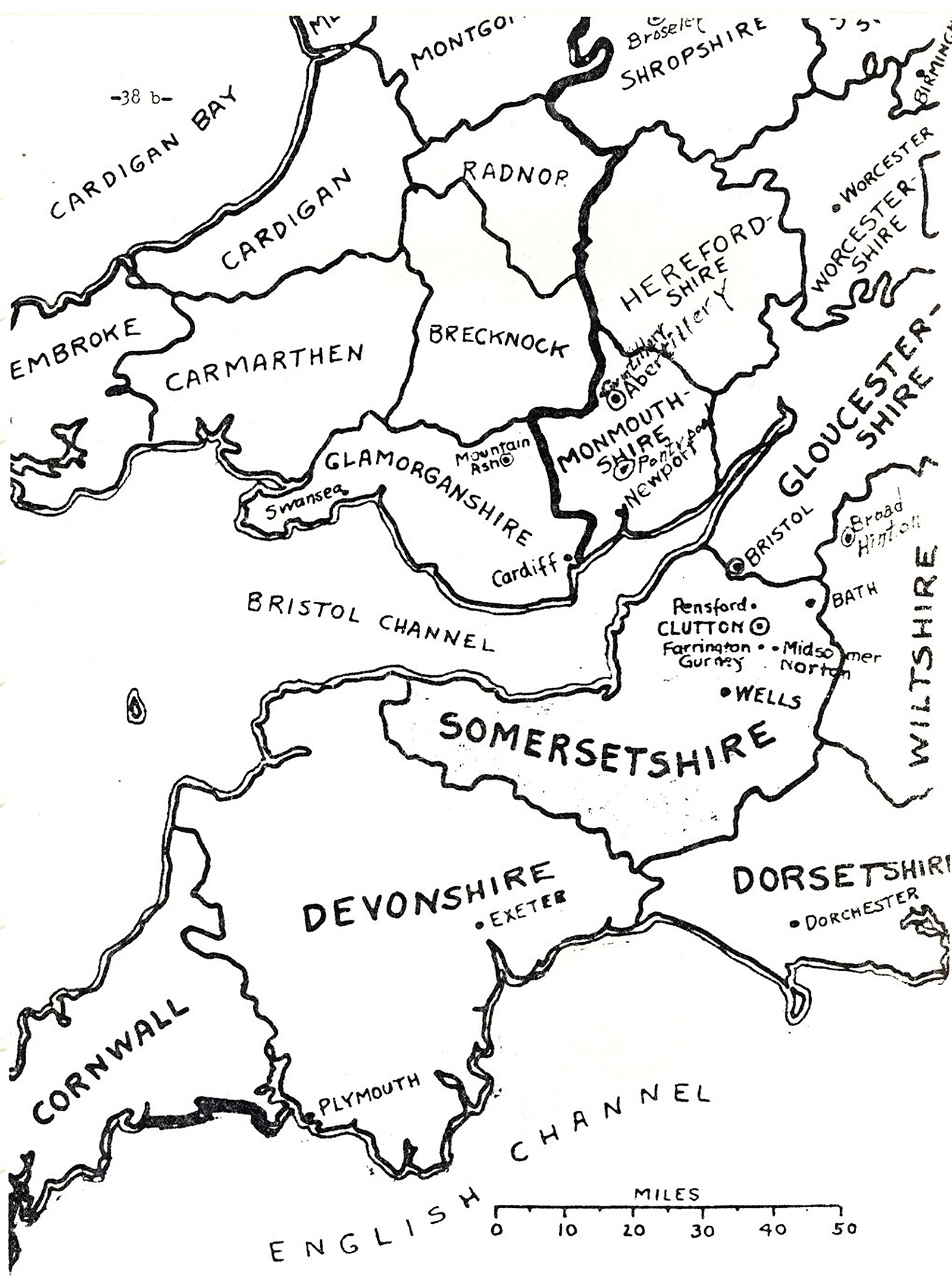 Clutton is about eight to ten miles south and slightly to the east of Bristol, which is inland a few miles on the River Avon, which empties into the Bristol Channel and therefore, allows the tide to back up the river making it for several miles a navigable river. Bristol is one of the great ports of south England, in fact, all of England.