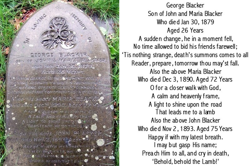 Tombstone of George, Maria and John Blacker in the Mountain Ash Aberffrwd Cemetery