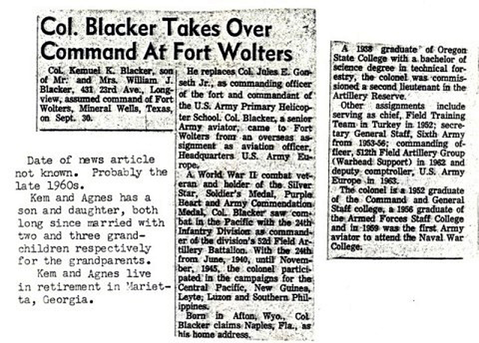 My mother never remarried and she has been teaching school in Laramie, Wyoming for the past 32 years. She was selected Teacher of the Year for the state of Wyoming in 1972.