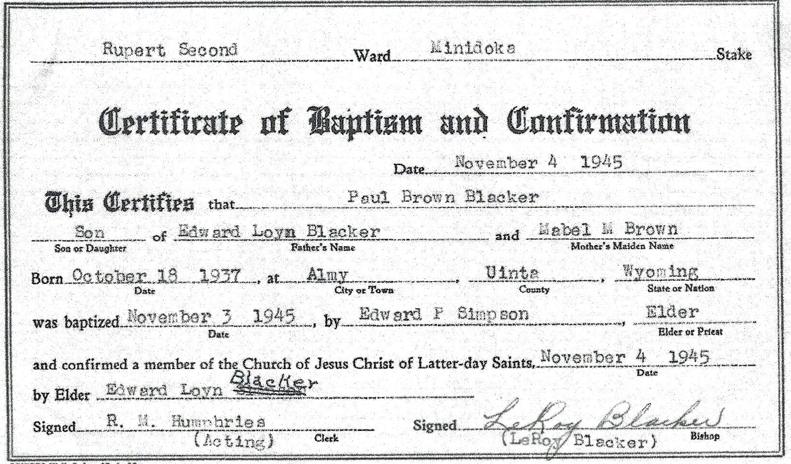 My father was Edward Loyn Blacker and my mother was Mabel May Brown. They were married in the Salt Lake Temple on October 9,1936. Since these were the only parents I had, I was not able to recognize or appreciate what truly great people they were.