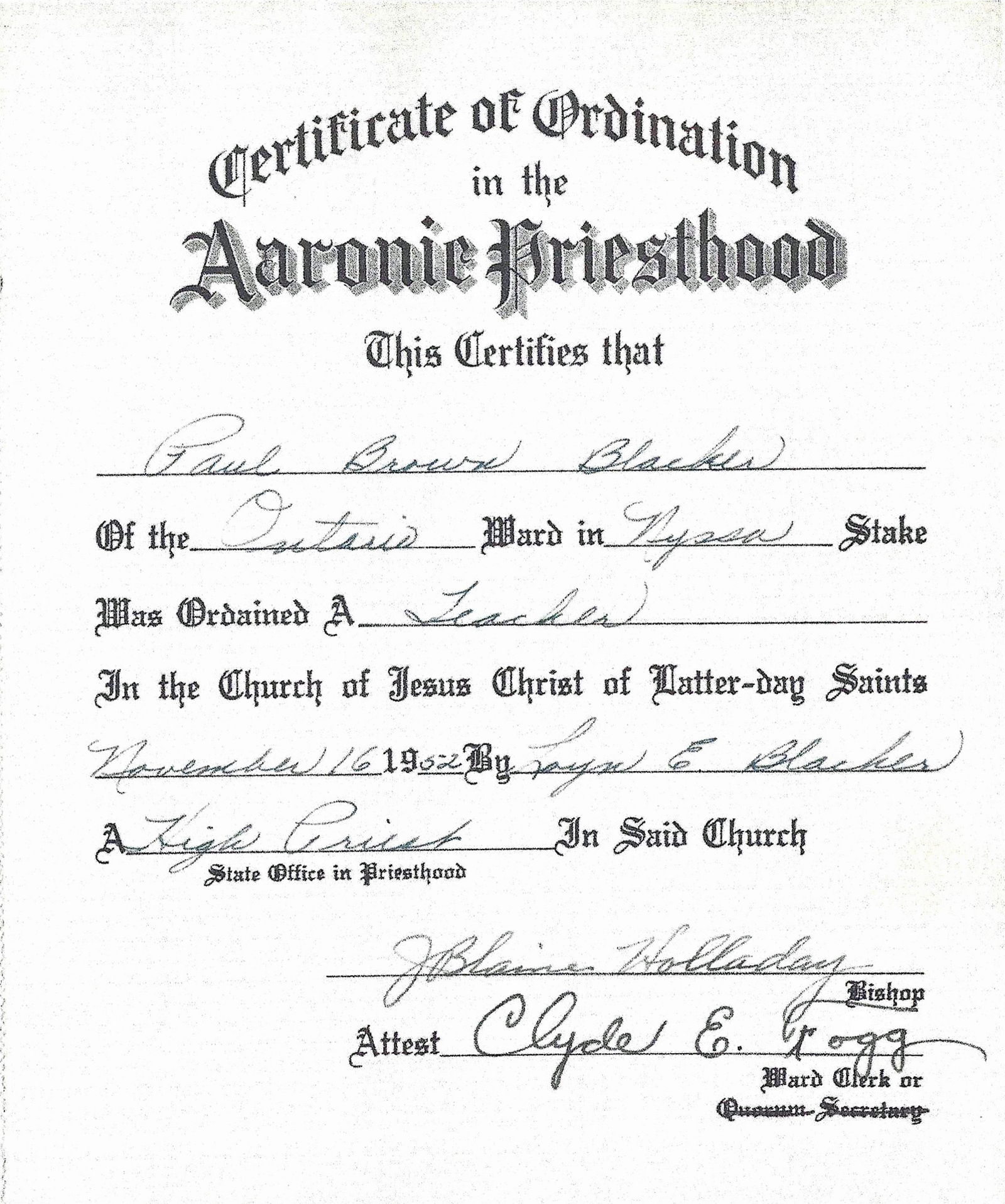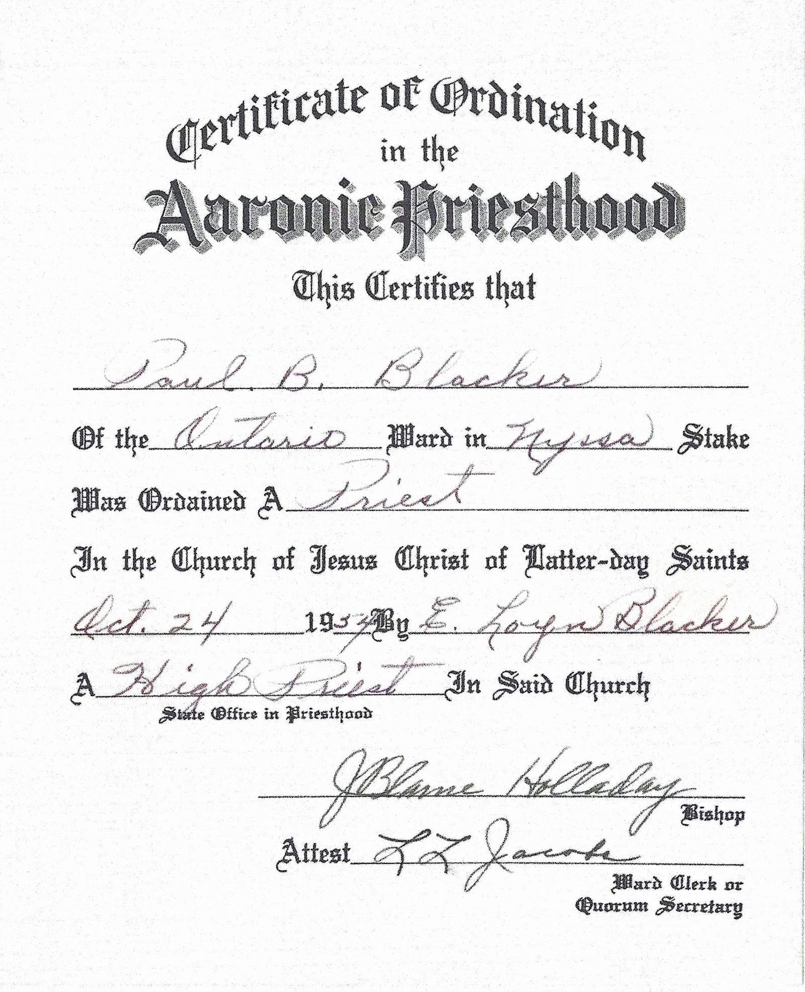 During my Aaronic Priesthood years I received seven individual awards for attendance - three of the five were for 100% attendance. I progressed through the Priesthood offices until I graduated from high school.