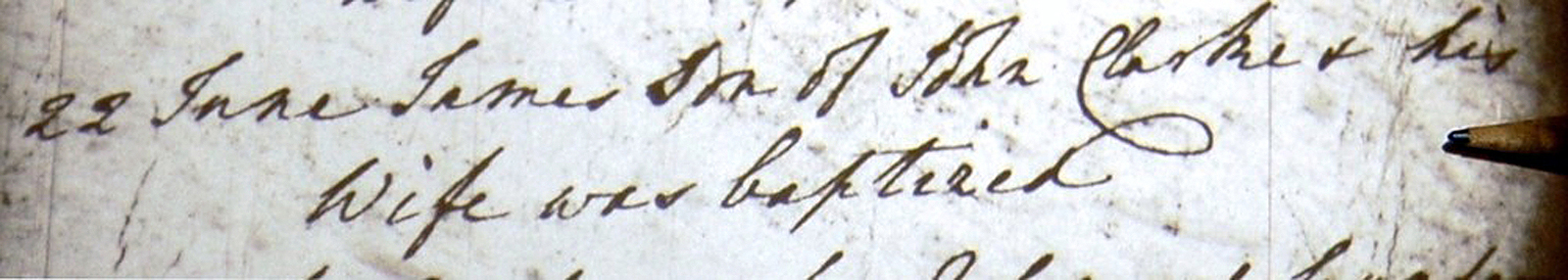 "22 June James Son of John Clarke & his wife was baptized"
