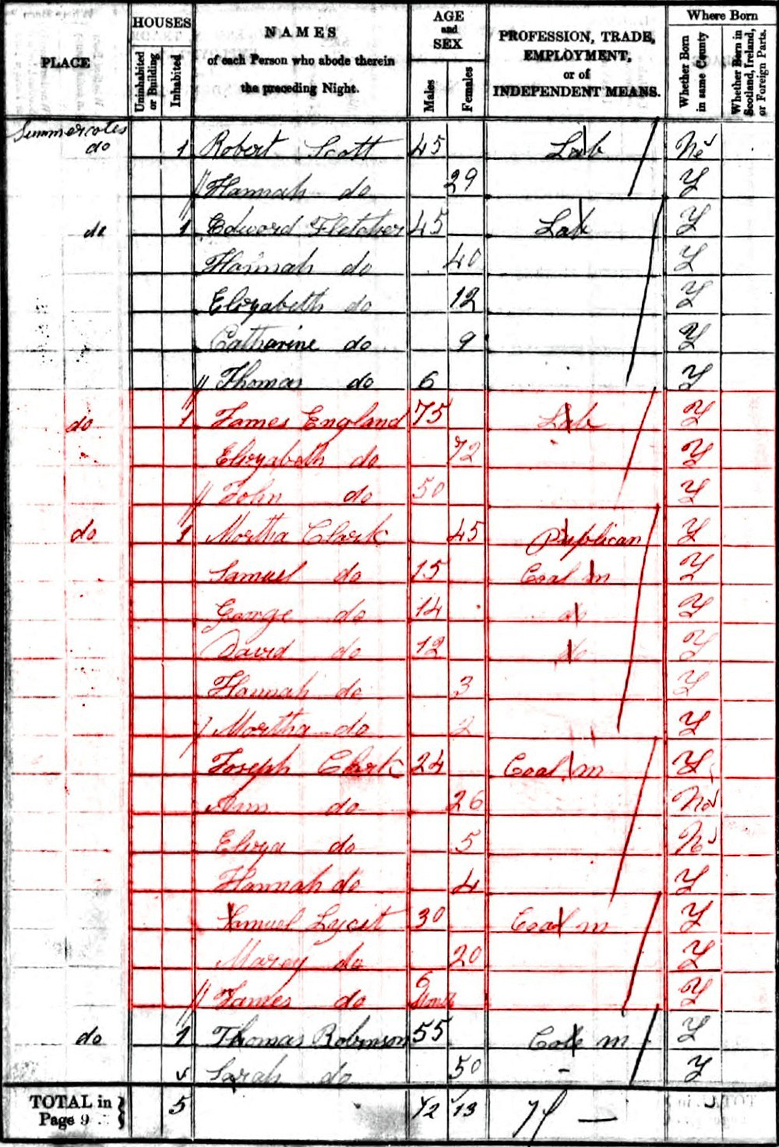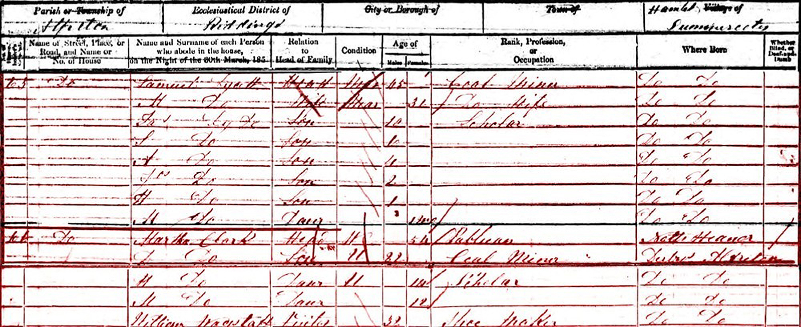 Martha's parents, James and Elizabeth, are living in a home next to her. In the same home is a man called John England age 50. He could be their son, however I have never found a birth or christening record for him.