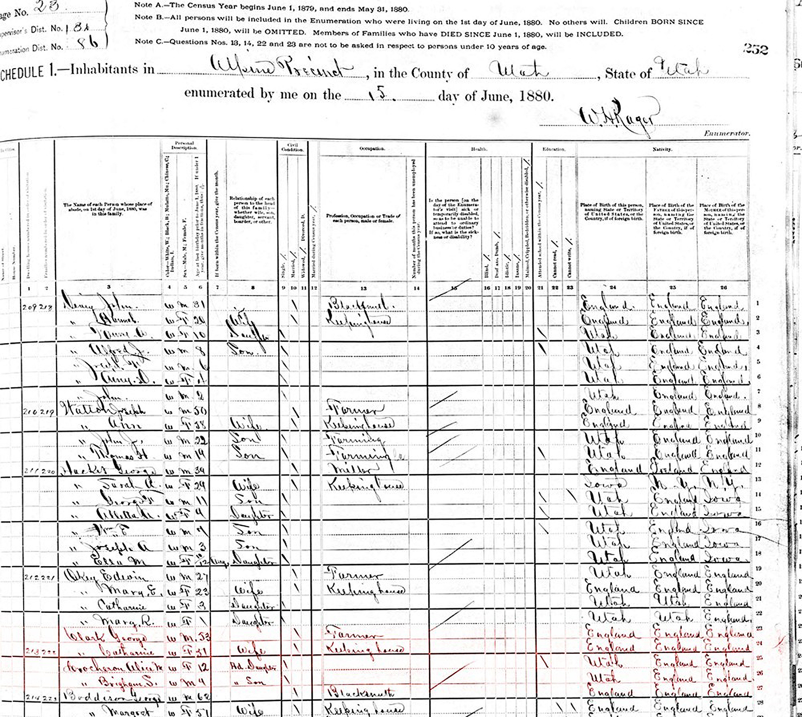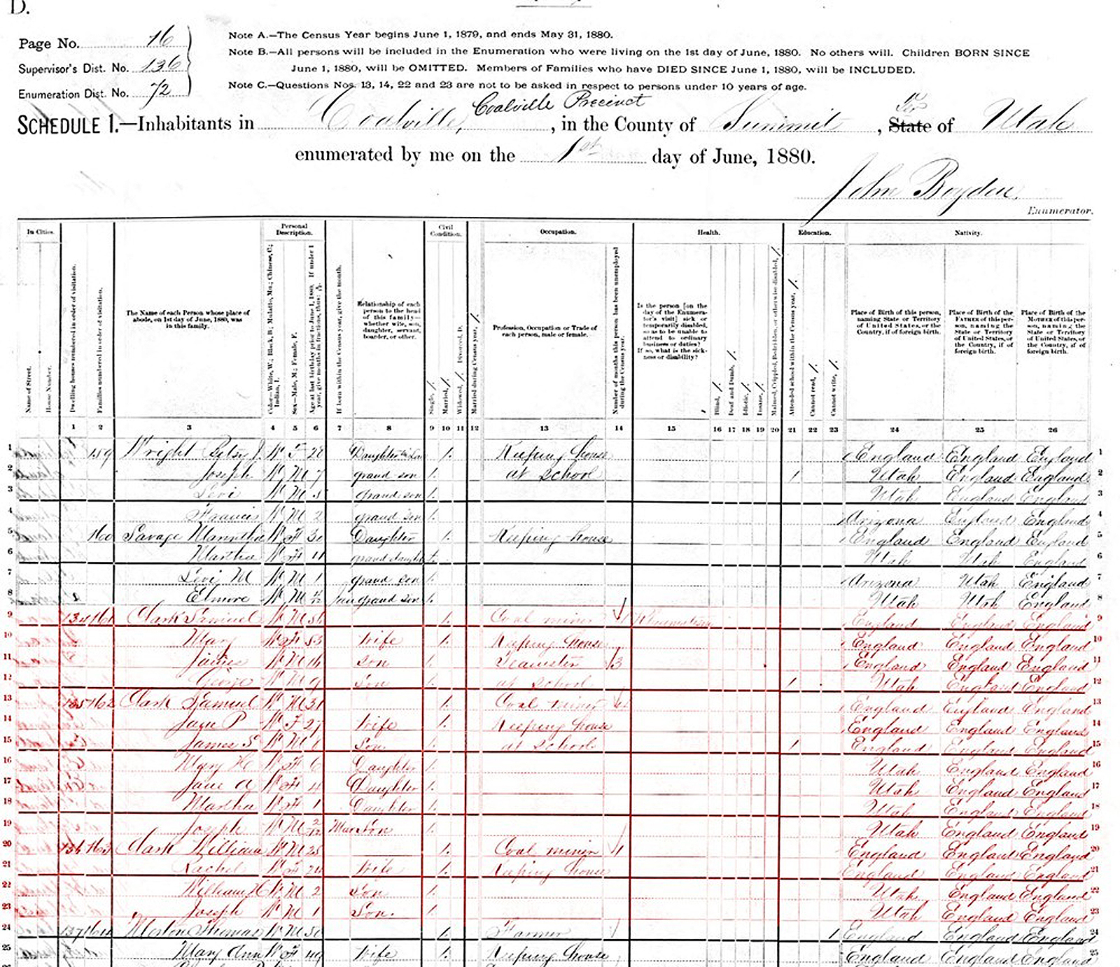 On 1 June 1880, Samuel Clark and his wife Mary Hoyland appear in the 1880 US census in Coalville, Summit, Utah. Their children and grandchildren are with them.