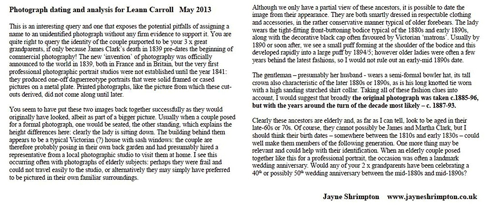 Many members of my mother's family have assumed that the images above represent James Clark and Martha England. However they probably are someone else.