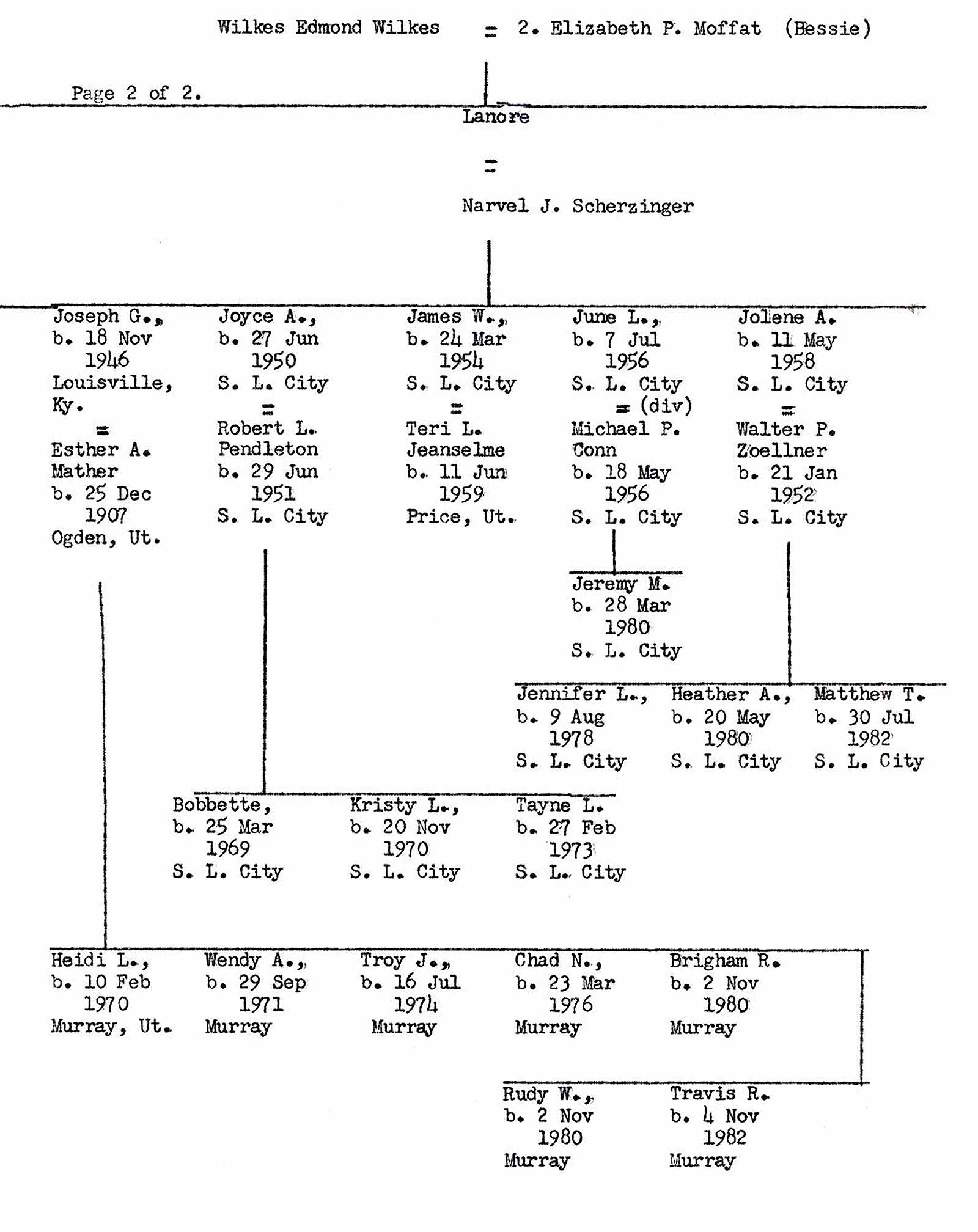 "Murray's and Lucy's eldest son, Robert and daughter, Annettte are married with six and three children respectively and their youngest daughter, Carolyn is, 1984, a student at Utah State University in Logan."