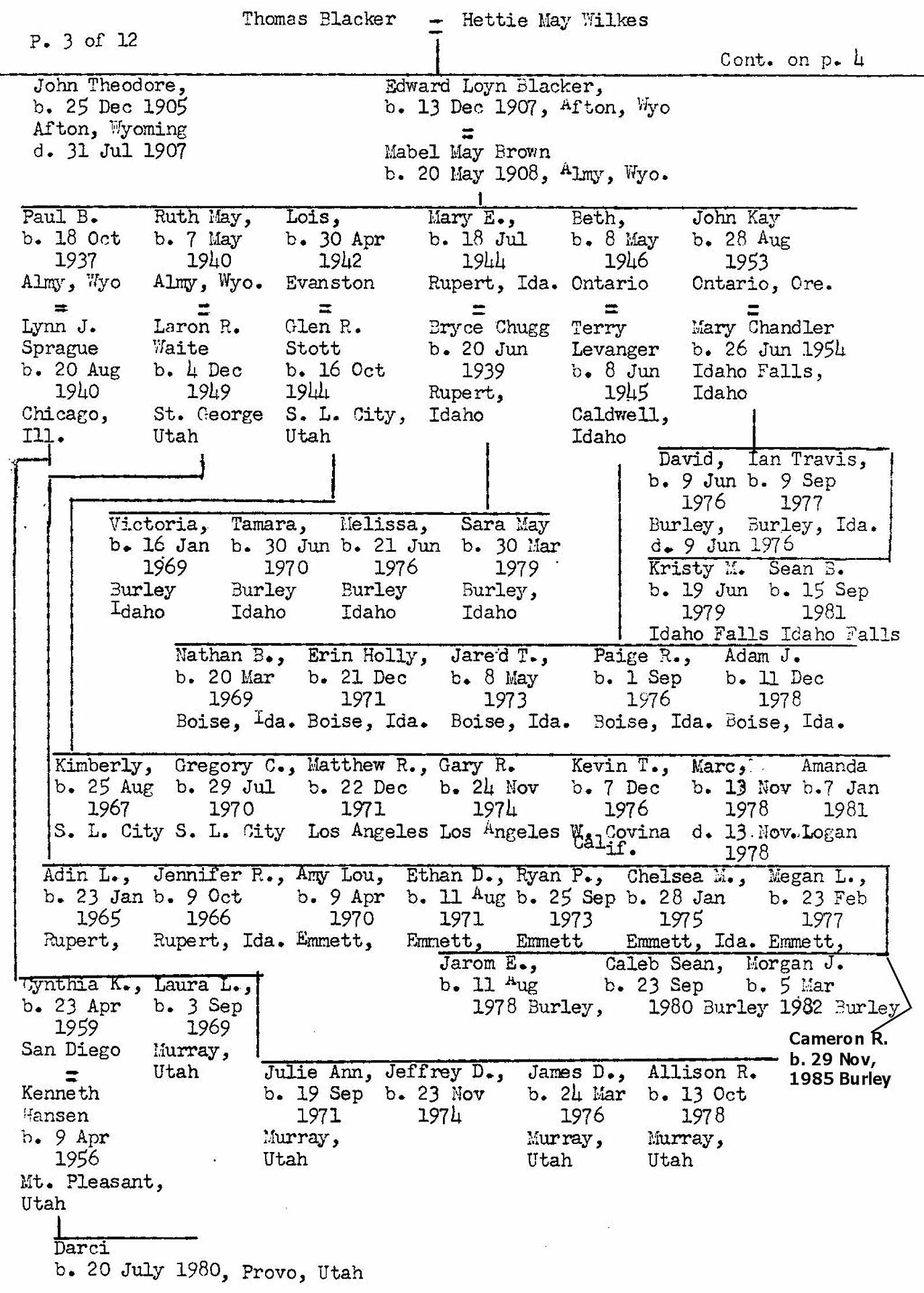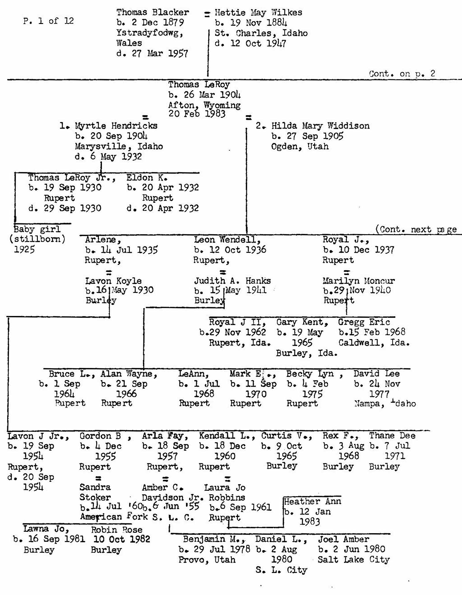 Family-history-wise, as many of you are aware, I compiled a history of my parents in 1971 titled, "Born of Goodly Parents, the Story of Thomas and Hettie Wilkes Blacker", a 125 page history bound such as is this history.