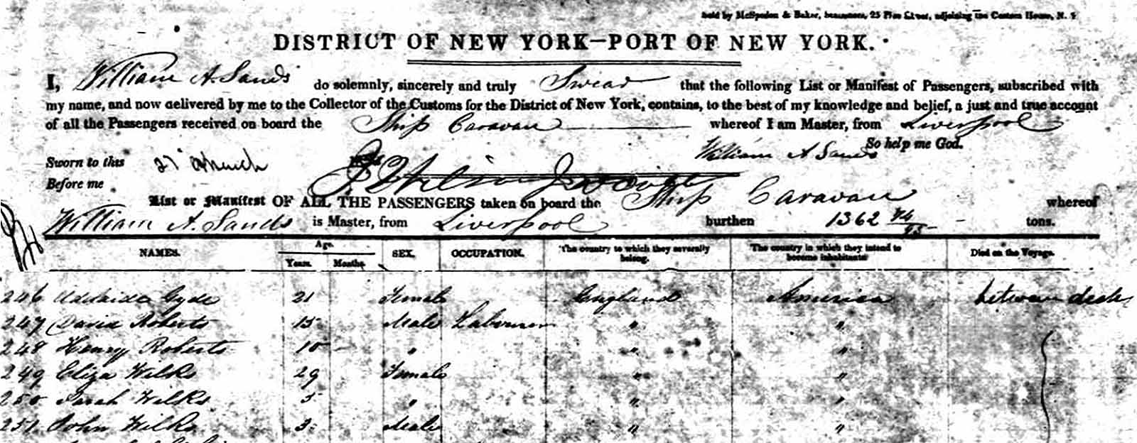 "THE SHIP CARAVAN. -- Elder J. Taylor writes from New York, under date of April 2, as follows -- 'The Caravan arrived on the 27th ultimo, all well, no death but one child three years old. Those going forward have already started for their places of destination, the remainder, I think, will get employ.'"